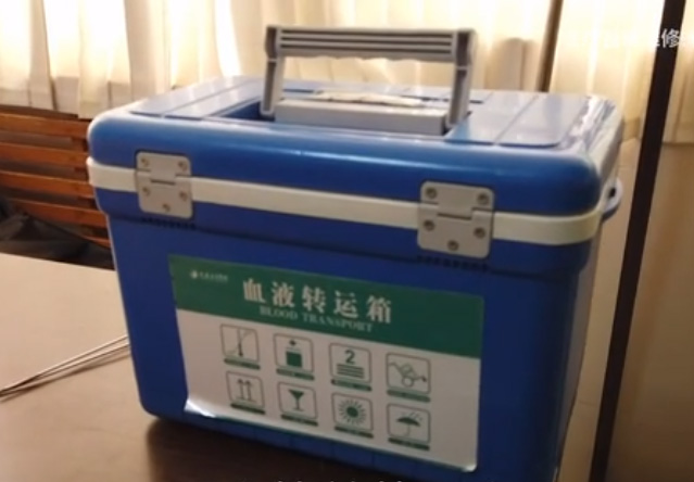 醫(yī)院輸血、送血,用血液中轉(zhuǎn)箱來(lái)周轉(zhuǎn),它是一個(gè)帶保溫功能的箱子。箱子里面內(nèi)膽可能有一些泡沫之類的保溫材料。箱子的前面有一塊液晶顯示屏,用來(lái)顯示箱子溫度數(shù)據(jù)。不顯示的話就是電池沒了需要更換電池。箱子的扣子打開后,正常的話是放冰袋之類的東西,它的目的是可以讓里面的血液保持在一個(gè)恒定的溫度。因?yàn)槲覀冋5难旱臏囟刃枰娣旁诎藬z氏度左右。拿走上面的格子槽,可以看到箱體里面的大空間來(lái)存放血液制品。根據(jù)血液、血漿、血小板不同材料要求來(lái)進(jìn)行溫度調(diào)節(jié)。溫度不會(huì)受外界影響變化。