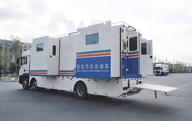 核化污染洗消車能夠?qū)崿F(xiàn)快速發(fā)展開展被核化污染管理人員的現(xiàn)場去污洗消,可放置在核化損傷救治基地建設(shè)作為一個二次洗消用房。在核化突發(fā)事件中,核化污染洗消車化學(xué)放射物質(zhì)洗消的首選裝備。